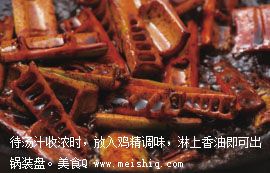 待汤汁收浓时,放入鸡精调味,淋上香油即可出锅装盘。
