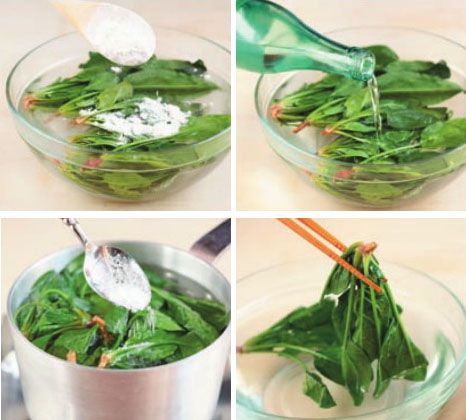 2、浸泡 :冷 水 中加少许白醋或食盐,放入菠菜浸泡一下,令其变新鲜。