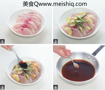 将鲅鱼洗净, 用斜刀法切成约2厘米的薄片,把鱼片放在碗中,加入姜片、葱段、胡椒粉和 1 茶匙酱油腌 10 分钟。将料酒、白砂糖、五香粉、香醋、酱油和一杯水放入锅中,大火熬煮 5 分钟,盛出晾凉备用。