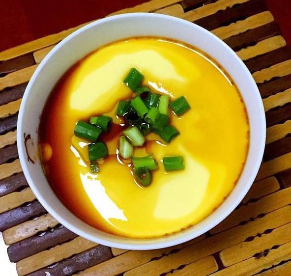 鸡蛋放入蒸锅中,旺火 2 分钟蒸至刚刚凝固。铺上海胆黄,大火蒸 5 分钟,至海胆黄变色变硬。