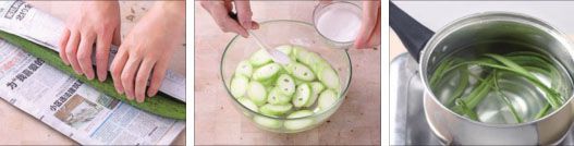 3、买回新鲜的丝瓜不等于万事大吉了,切丝瓜的刀法也很重要,最好能够切除丝瓜中心的白色纤维,就是与籽粘连的部分,因为过多纤维也会让口感变粗糙。