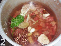 将 白卤水、料酒、姜、葱段放入陶瓷锅中,再放入码好味的牦牛肉块,用小火煮2~3小时,至牦牛肉软熟时捞出,冷后切成条即成。