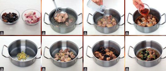 待大火烧开之后,转小火慢炖,放入黑木耳,炖 20 分钟后,大火收干汤汁,盛出撒上香葱粒即可。