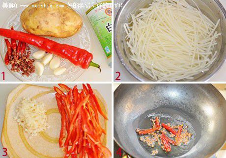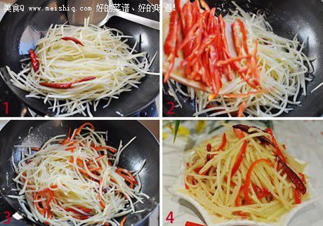 2、土豆一定要控净水份再放进去炒,要大火炒土豆丝。