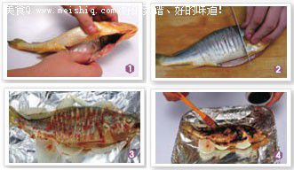 鱼身刷一层植物油,入200度烤箱中层烤10分钟,取出,刷烤肉酱,再烤5分钟,重复刷烤肉酱,烤10分钟。