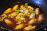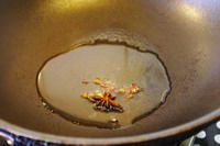 锅中油烧热,放入八角,花椒,香叶,出香味后撇出,在放入葱节和姜片爆香。