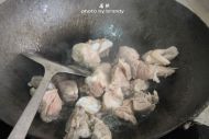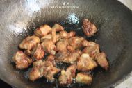 待冰糖开始融化的时候放入排骨,小火慢炒。