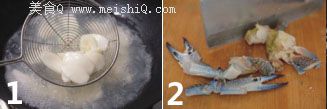 锅内入底油,加姜丝翻炒,放入蟹块,翻炒至蟹块均匀沾满底油,且变成红色,出锅装盘待用。