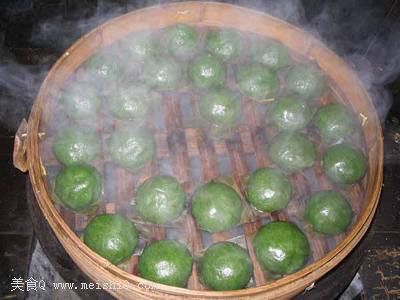 清明团子油绿如玉,糯韧绵软,清香扑鼻,吃起来甜而不腻,肥而不腴。特色习俗美食又称“清明馍馍”,“清明蒿子粑”等,是中东部一带清明节前后的特有美食习俗。清明团子是用一种名叫“浆麦草(艾草)”的野生植物捣烂后挤压出汁,接着取用这种汁同晾干后的水磨纯糯米粉拌匀揉和,然后开始制作团子。如果少了其中一种粉也没关系 的,只是口感上的差别而已,大 米粉的加入可以减少糯米团子的 粘性,小麦淀粉加入不但可以减 少粘牙的口感,还会使团子看起 来有光泽度。艾草是野地里长的,所以一定 要仔细的整理,摘去杂草老叶子 等,还要反复的清洗;艾草有股苦涩味,所以必须焯水 再用;蒸的徒中不要开盖子,一次要蒸足时间;清明团子属于糯米食品,多吃 不易消化,所以记得不要贪吃哦 。
