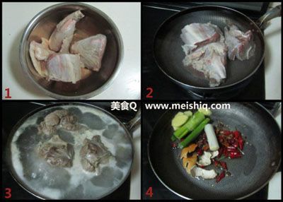 将牛键子肉切成大块,放入冷水中浸泡三个小时以上;将浸泡过的牛肉冷水下锅煮,放入几片生姜;煮开后撇去浮沫杂质,继续煮上几分钟,直到牛肉表面不在出现红血丝;将锅烧热,凉油下锅,加入辣椒,八角,香叶,陈皮,花椒,桂皮,大葱,姜片等调料翻炒;