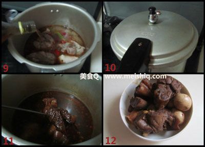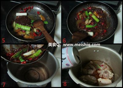 将调料煸炒出香味后加入适量的黄豆酱;一起小火煸炒;煸炒出香味后将炒好的调料放入高压锅中;加入刚才焯锅水的牛肉,再加入适量啤酒;