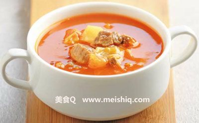 罗宋汤多数情况下被第一个捞干净吃光。如果你喝到了没有土豆的罗宋汤,也不会有人同情你的寂寞的。再说说其他的辅料,一个都不含糊。我们身体需要的各种维生素,胡萝卜素,膳食纤维,矿物质,碳水化合物,蛋白质,要什么有什么呢(除了过多的脂肪)。胡萝卜具有养眼养皮肤养毛发的功效,土豆、洋葱、西红柿都有抗癌减肥作用(没有弄错,土豆中只含有0.1%的脂肪,是所有食物中含量最少的。它一直被误解只是因为炸薯条),土豆里丰富的维生素B6还有改善精神状态的作用。养颜,保健,瘦身,养性——汤所能有的全部功效也就这么多了吧。