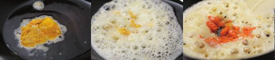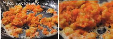 用少量的油炒咸蛋黄,煸熟。