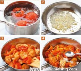 灵感来自西红柿炒鸡蛋这道家喻户晓的名菜,只是把鸡蛋换成了豆泡,这样的创新其实可以从许多菜式中获取灵感,一些荤菜的原料换一下就能变成素食者的最爱。