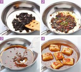 炒锅中放油烧热,把郫县豆瓣酱和葱末、姜末放进去,略煸炒一下。随着油温升高,葱末、姜末的香味会渐渐出来,同时,郫县豆瓣酱的香气和红油也会被逐渐炒出。