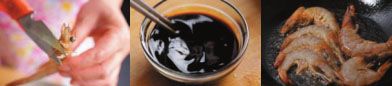 1. 冰冻南美对虾自然解冻,在背面剖一小刀,摘去黑色的肠泥,洗净沥干