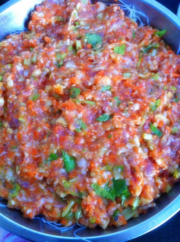 一般的蒸菜肉汁都是比较多的、所以蒸菜我喜欢用素菜或者粉丝铺底、因为铺底的粉丝可以刚好把所以的肉汁都吸收了、所以连粉丝都非常好吃呢、加入个红萝卜的肉末特别的甜、所以一点糖都不需要加、马蹄可以增加脆口的,感觉非常好吃的肉饼、推荐给大家