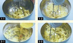 将黄油切成小块在室温放软,与糖粉混合搅打至黄油松发。