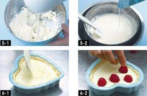 将奶酪糊倒入模具8分满,码放上樱桃颗粒,入烤箱中层150度烤35-40分钟。