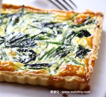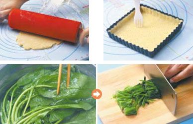 在烤好的派皮中填入适量的菠菜馅,表面撒些奶酪丝,再继续将其放入烤箱中上层,以180℃烤约20~25分钟即可。