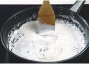 将A料中的糯米粉和糖粉倒入不粘锅中,小火干炒10分钟左右至炒出香味并颜色发黄后盛出放凉备用。