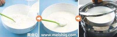 将B料混合放入大碗,搅拌均匀,入蒸锅,水沸后蒸15分钟至凝固。