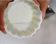 将材料A中的黄油涂抹在模具的内壁和底部,然后倒入糖均匀的粘满各个部位,然后将多余的糖倒出。
