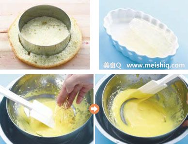 将蛋糕片垫入容器底部,刷上B料的混合液。
