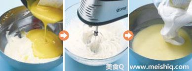 将E鲜奶油和糖打至6分发泡,混合奶酪、蛋黄,搅拌均匀成奶酪糊倒入容器。