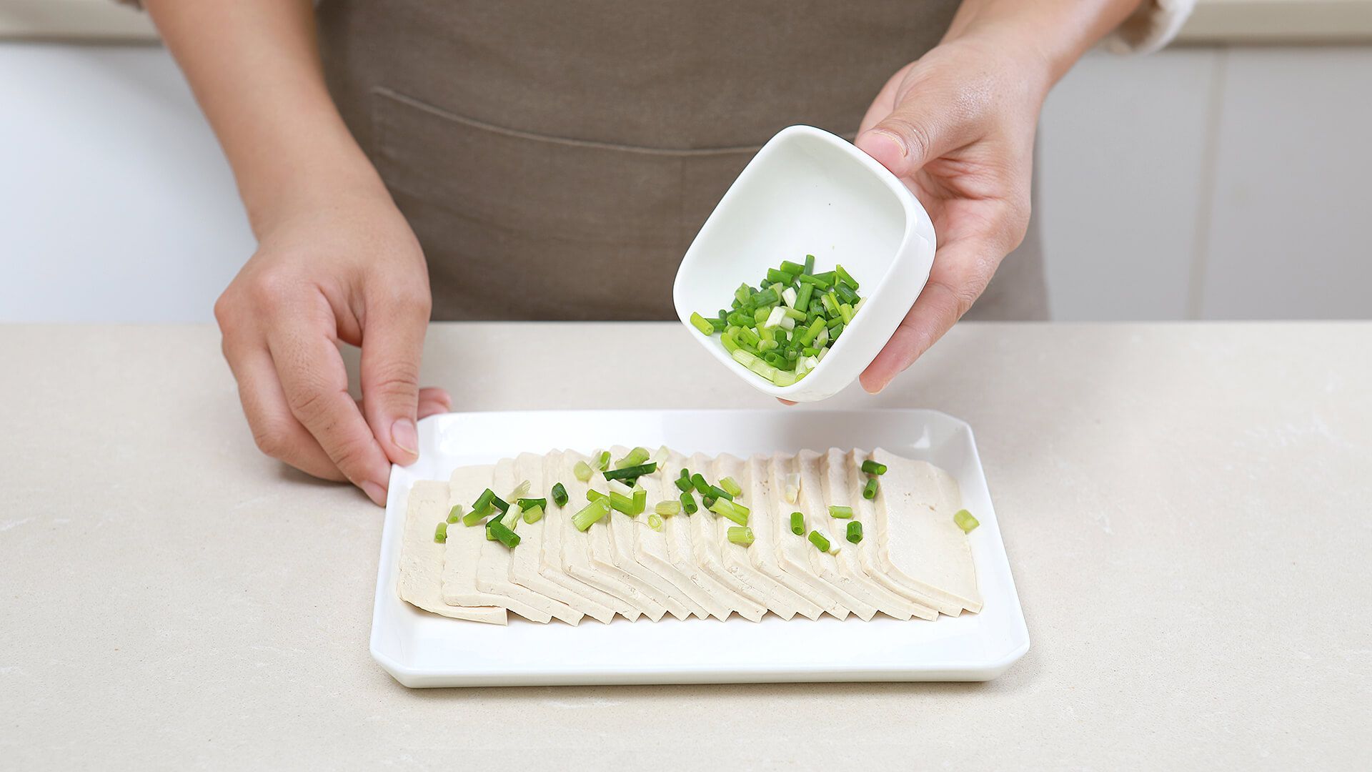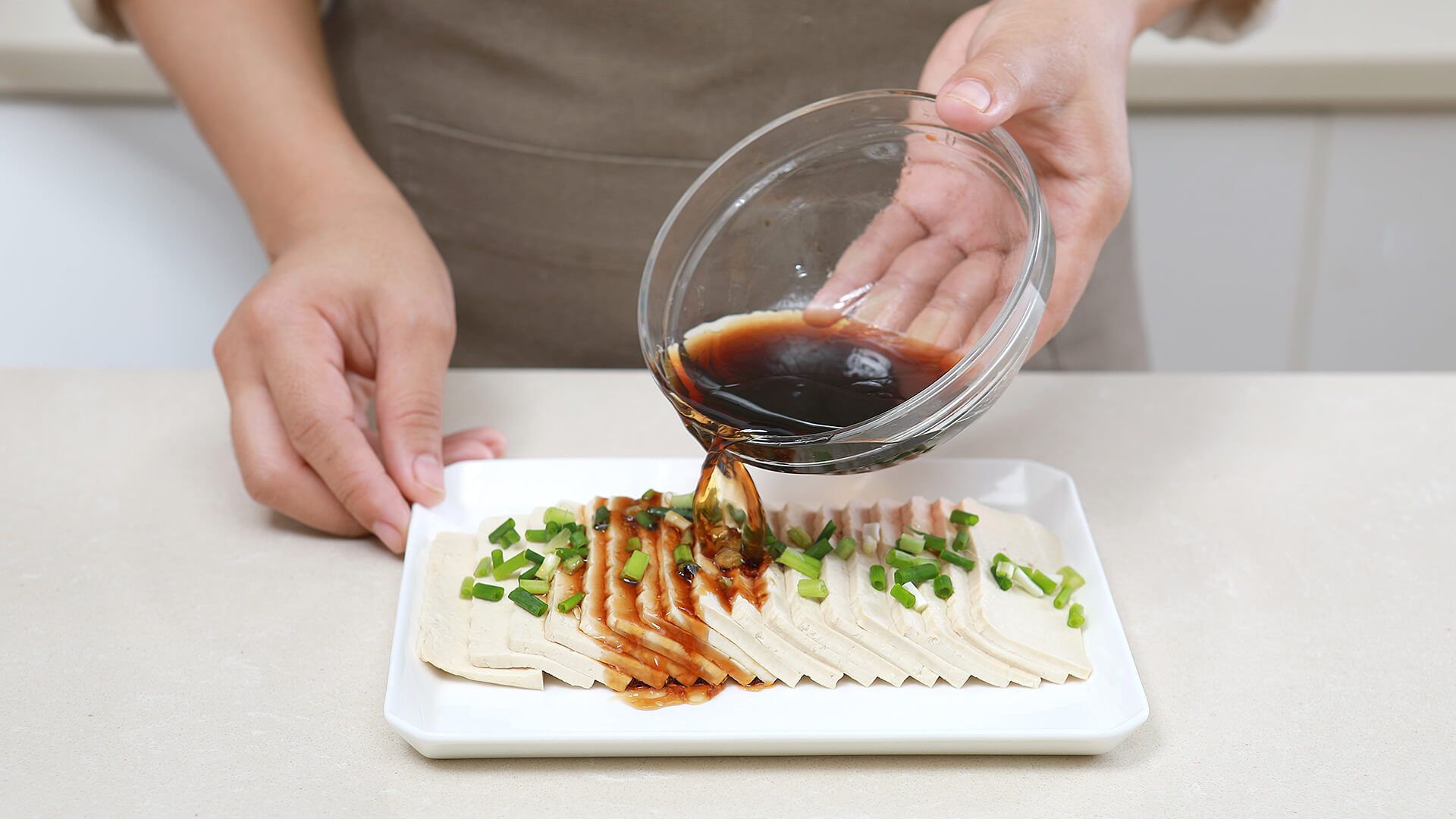将调好的汁淋在豆腐上,清淡爽口味道好极了。