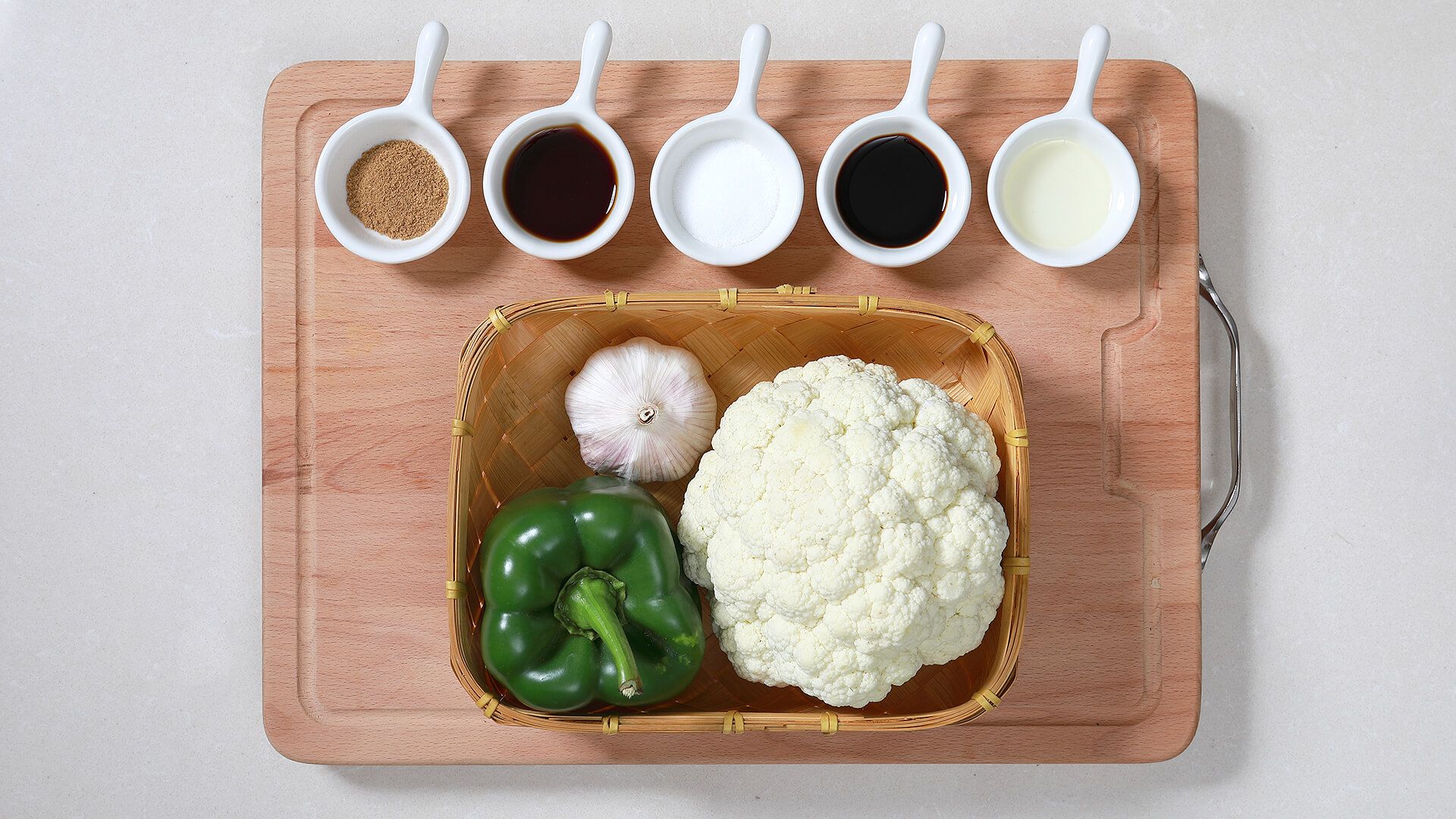 准备好相关食材佐料。大蒜切末备用。