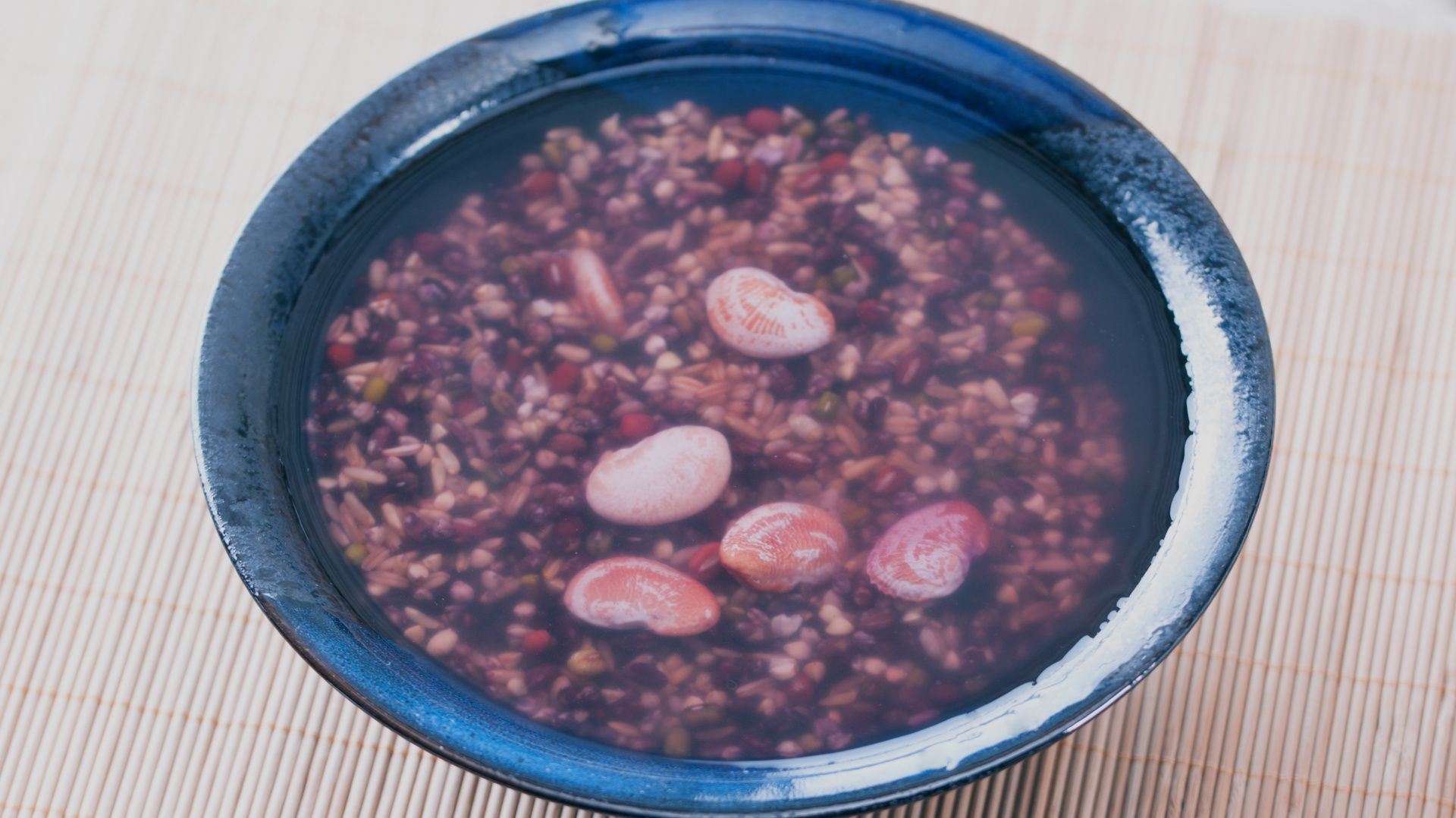 先将小麦、绿豆、红豆、花扁豆提前用水泡透,建议浸泡时间不少于8小时。一般早上吃的饭,晚上睡觉前泡上即可~