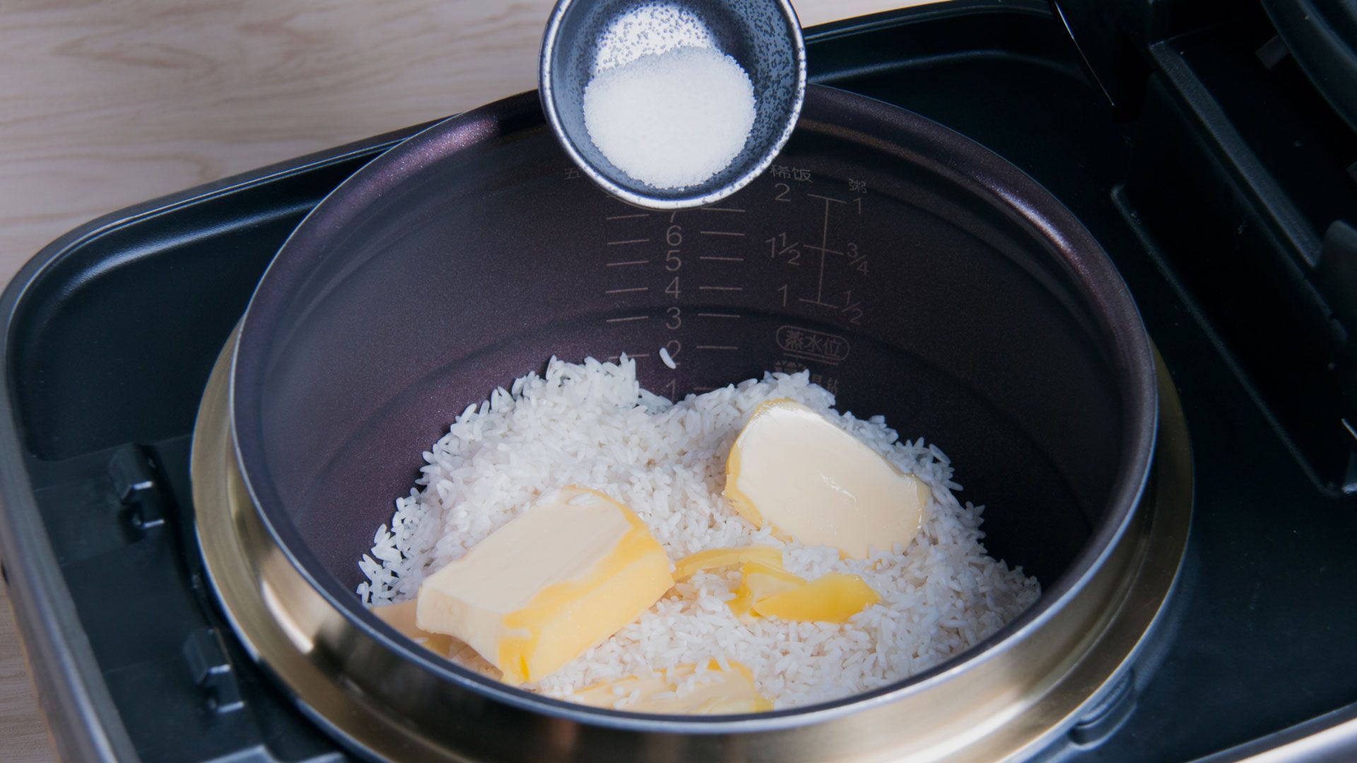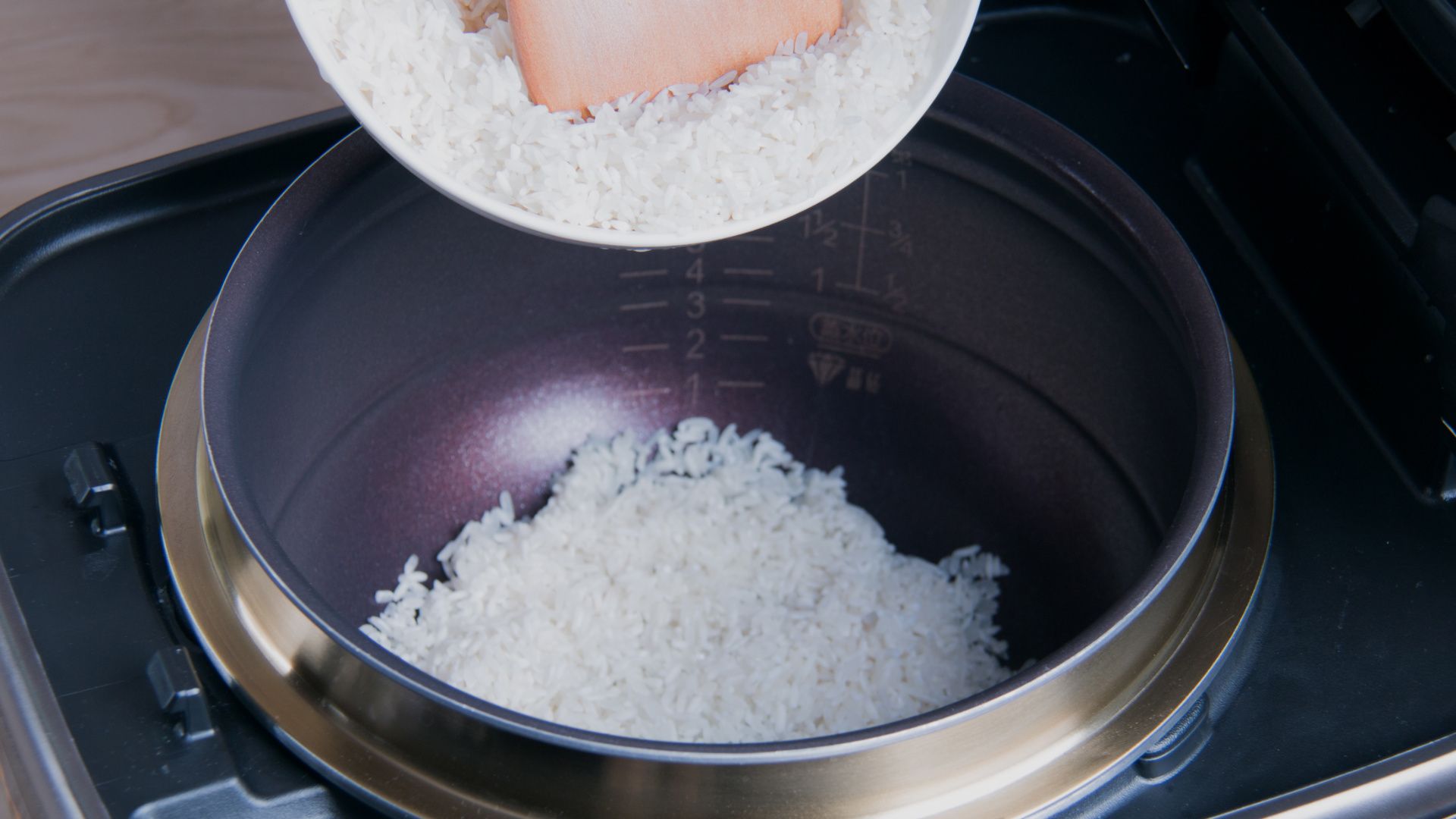 注入清水至煮饭3刻度水位,合盖开始烹饪。