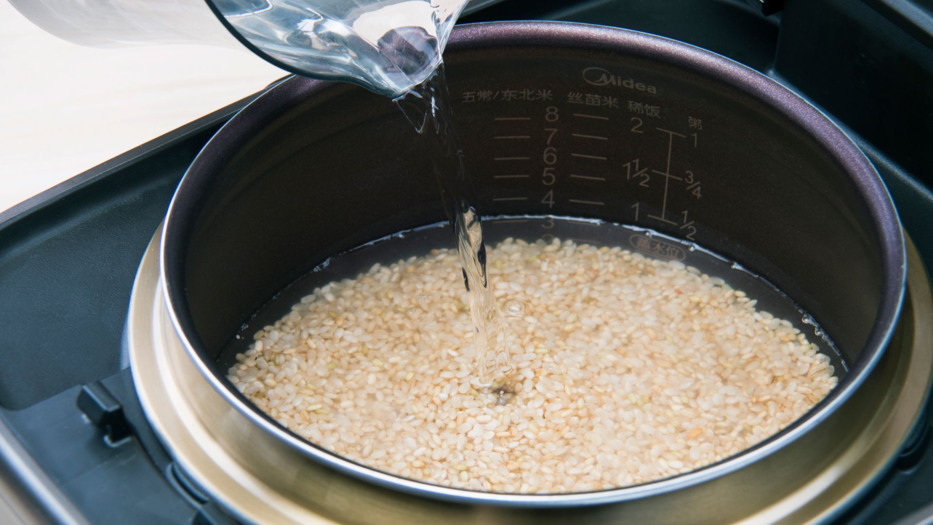注入清水至煮饭4刻度水位(约500ml),合盖开始煮食。
