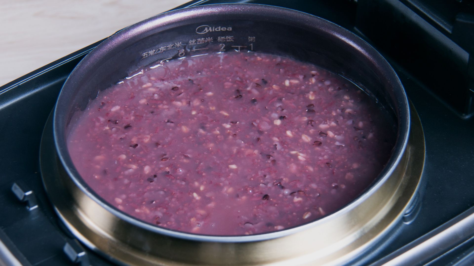 将黑米、燕麦、大米、糯米、小米、莲子称好放入容器洗净,用清水浸泡30分钟。