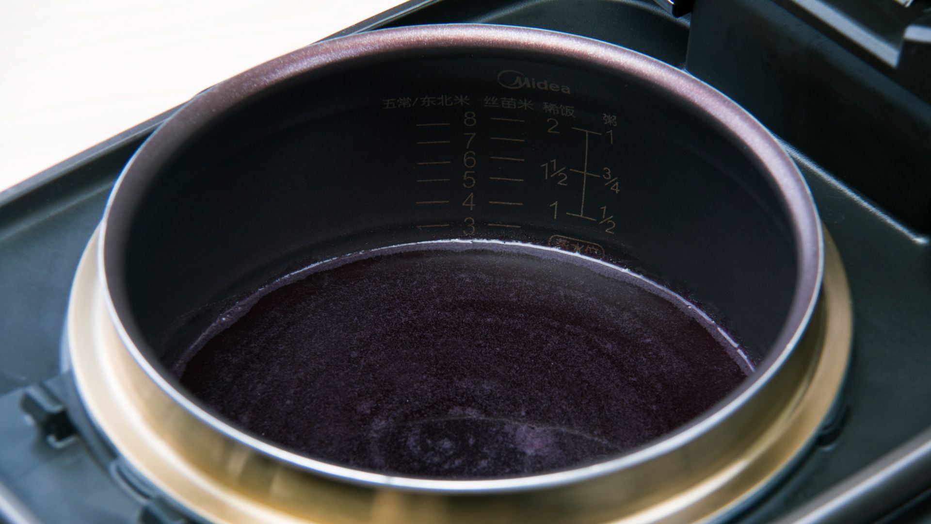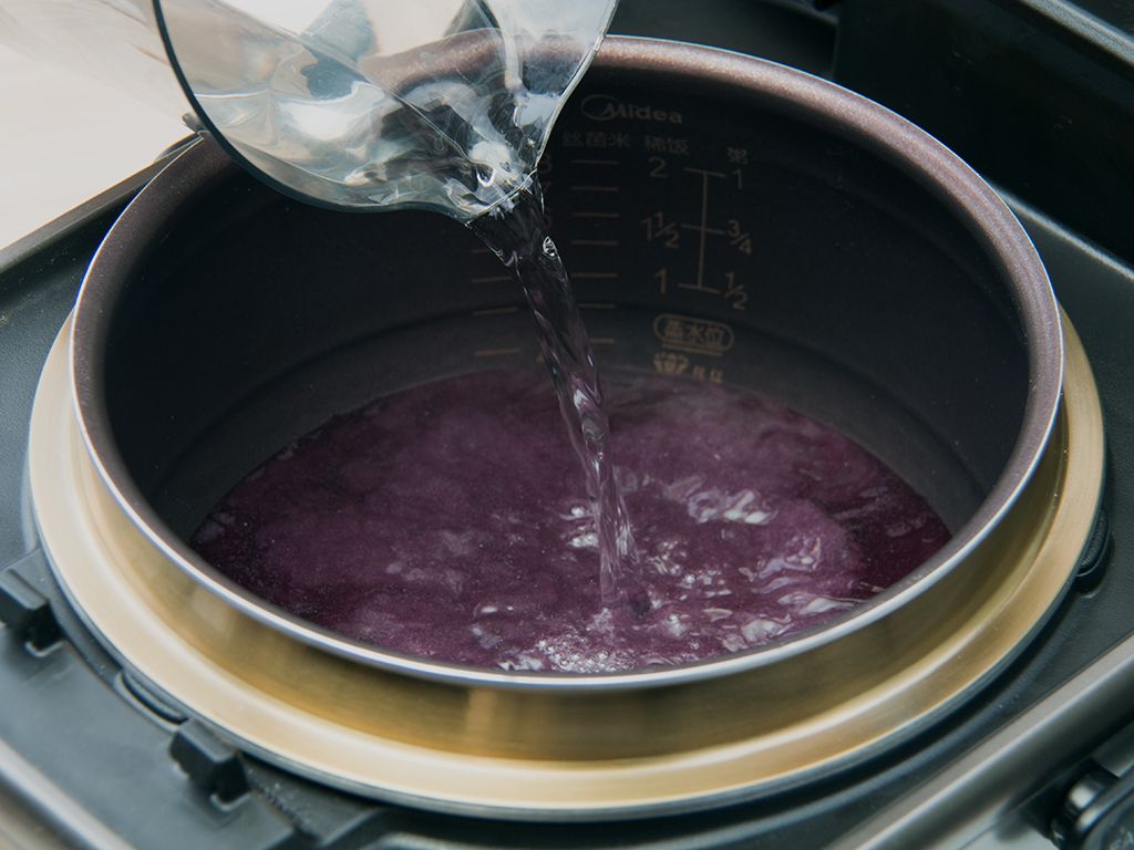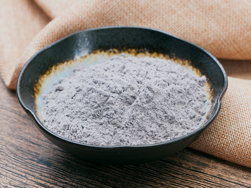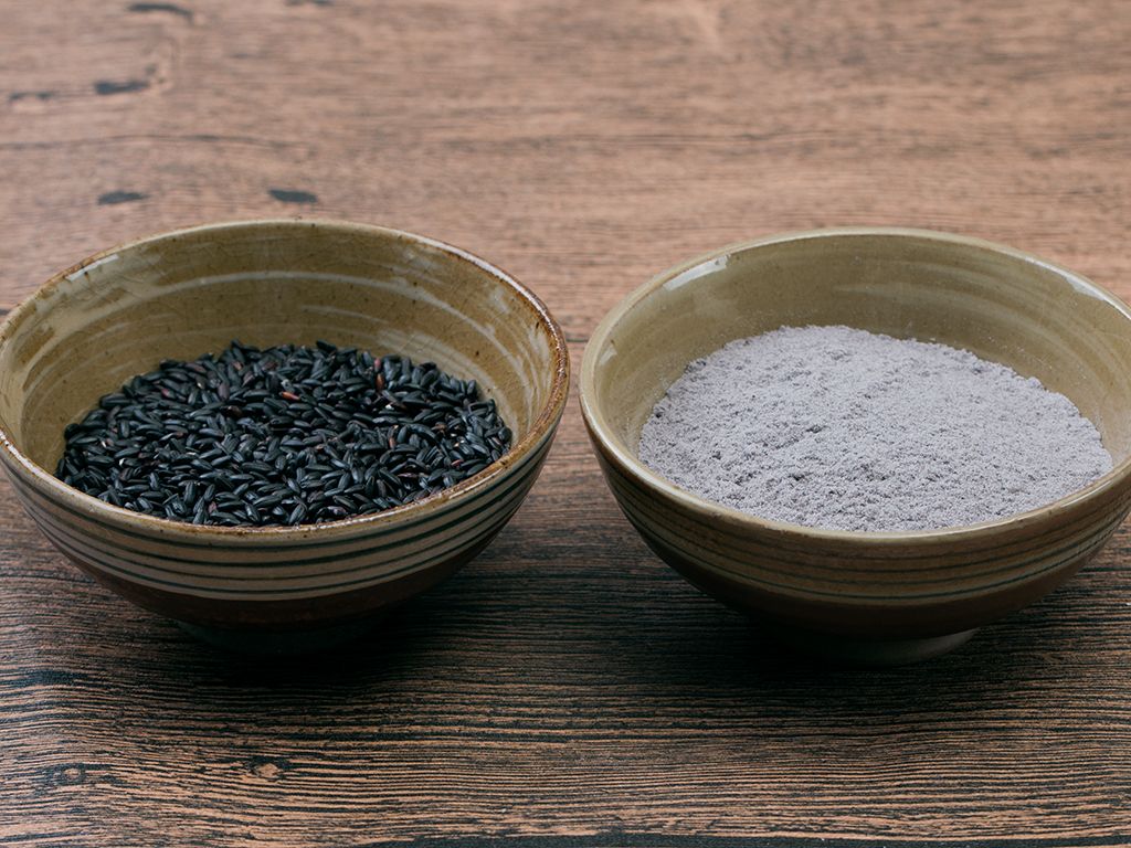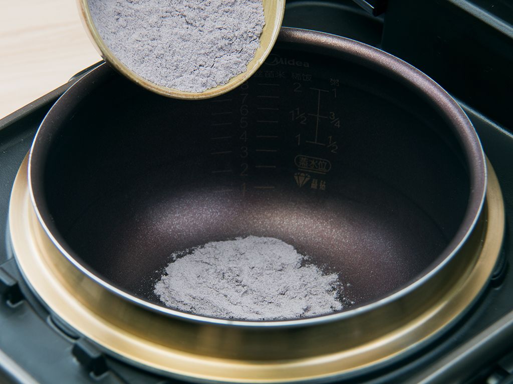 将黑米洗净、摊开晾干,磨成粉状。(也可商场买现成的)