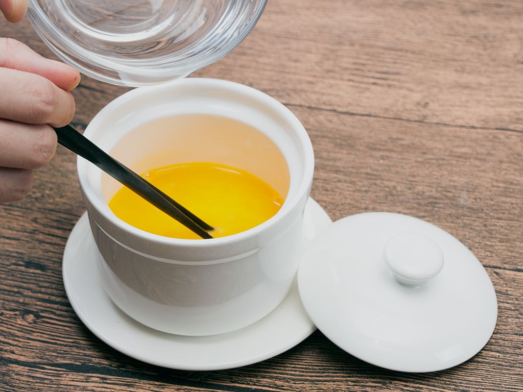 将鸡蛋打入容器中,加入1:1的凉开水或者米汤搅拌均匀。