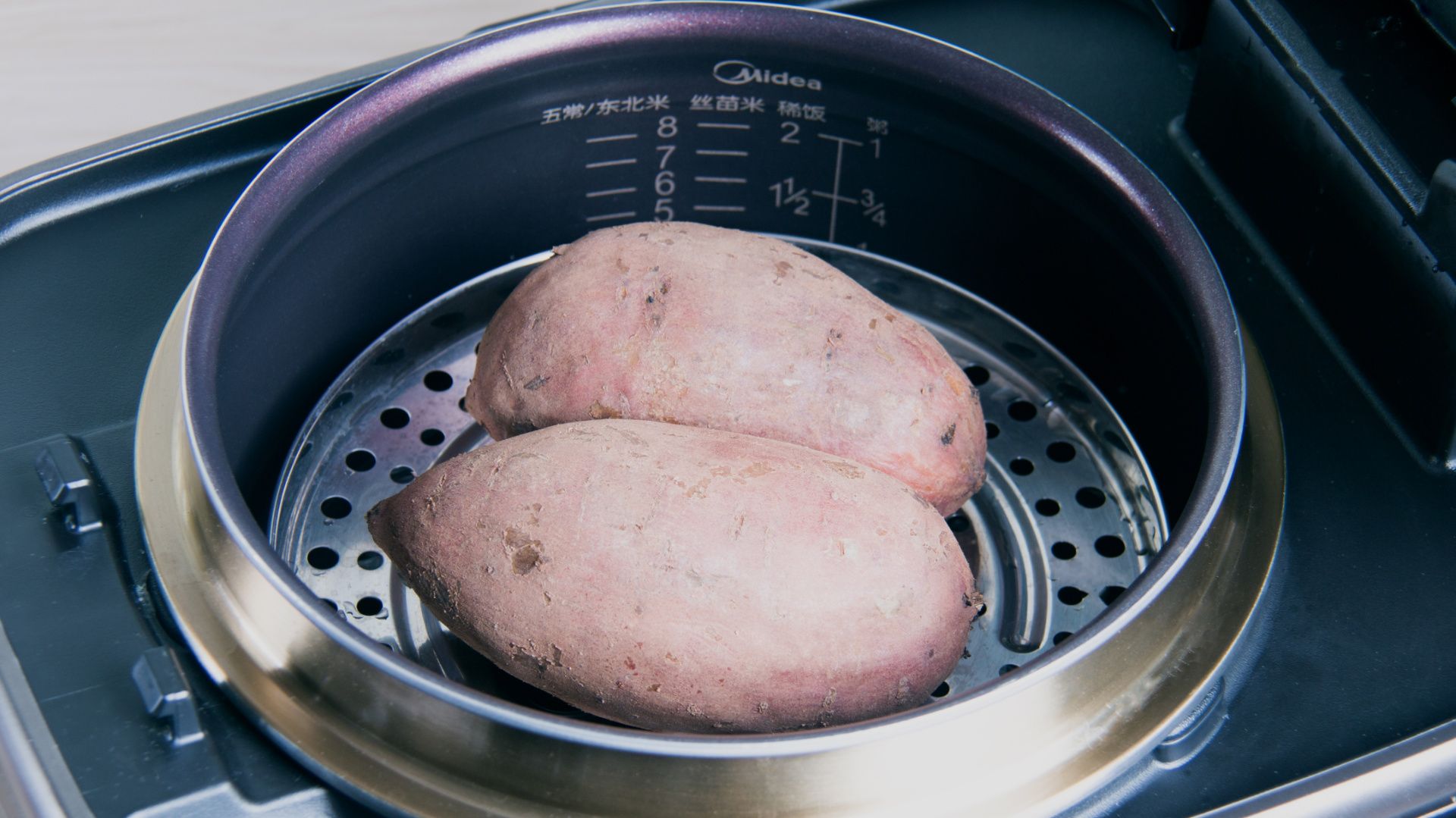 内锅放上蒸笼、摆入红薯(大块的需切开)。合盖开始烹饪,结束后即可食用。