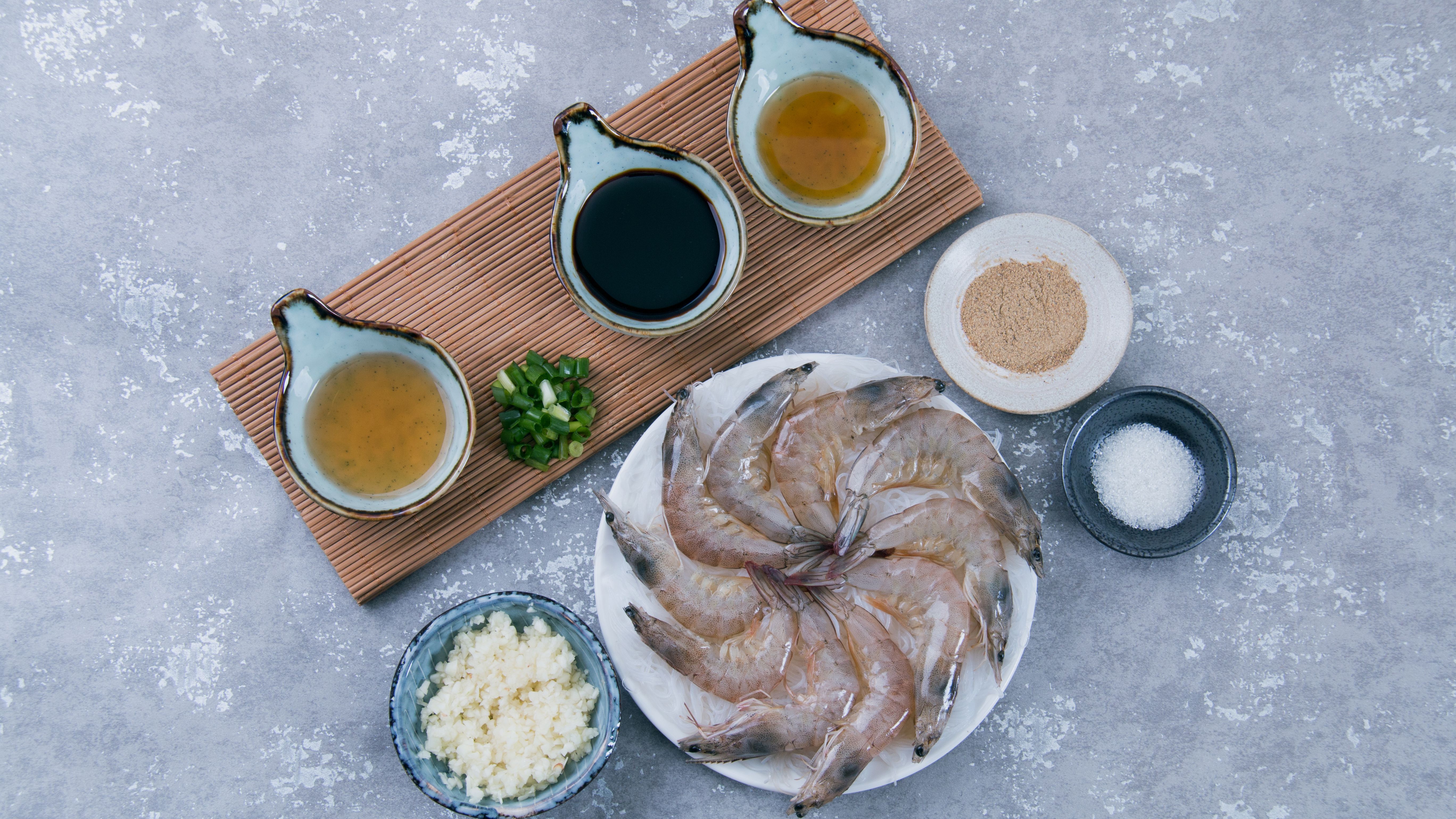 准备好食材,粉丝放入温水泡软,蒜剁碎。虾洗净、剪去虾枪和虾须、用刀在虾背划开挑出虾线,再加入料酒腌两到三分钟。