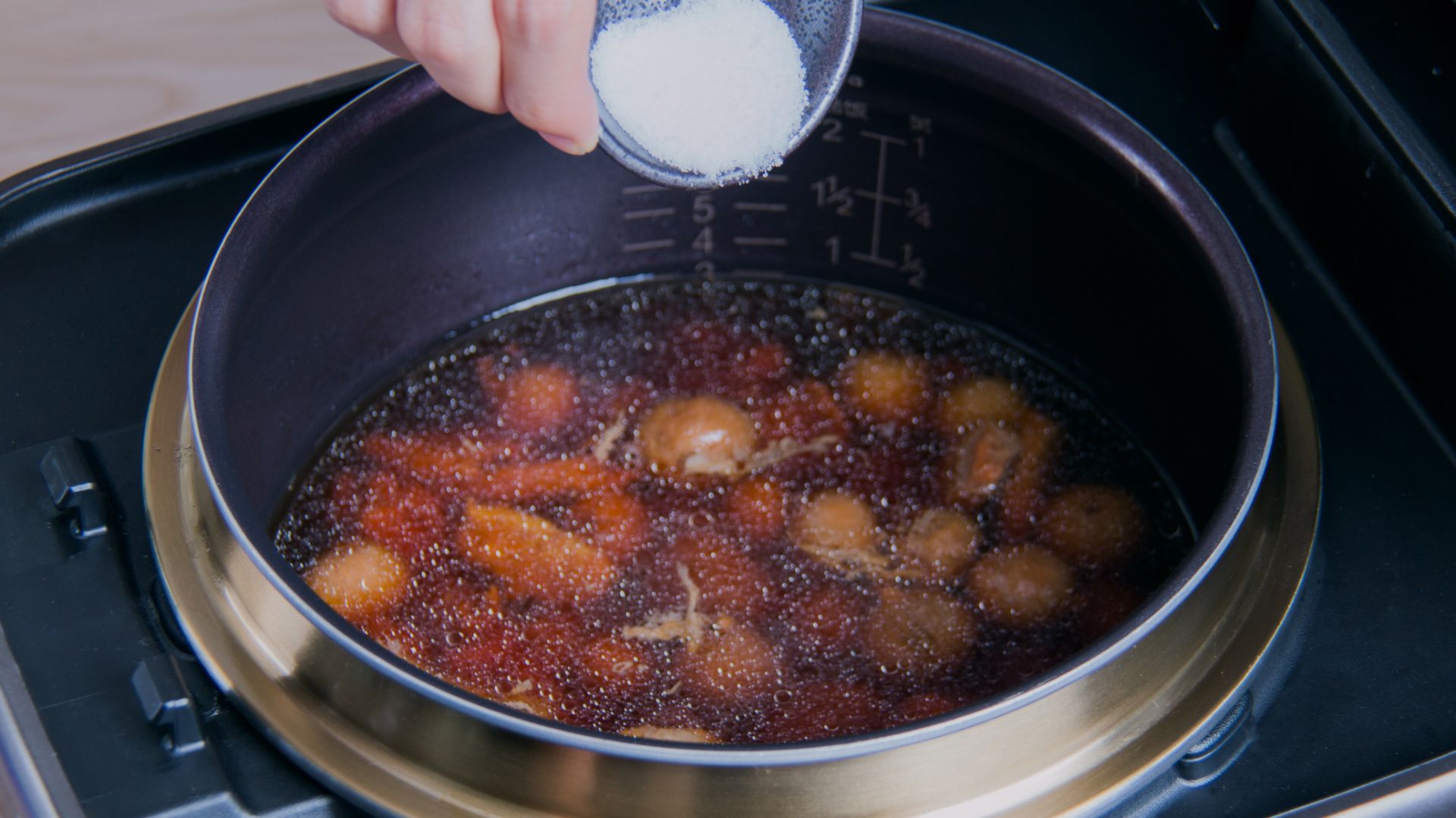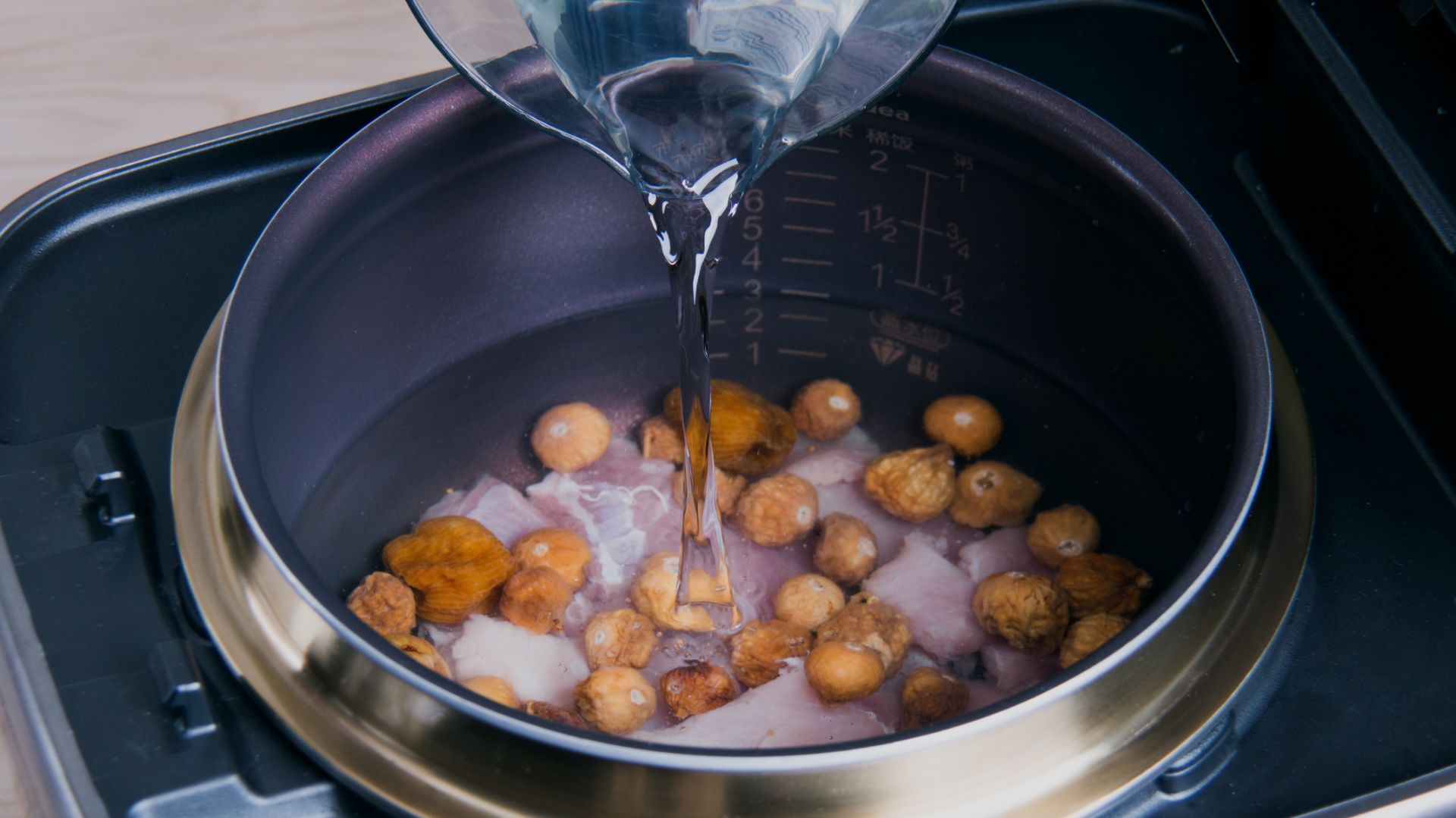 注入清水至煮稀饭1刻度水位,合盖开始烹饪。