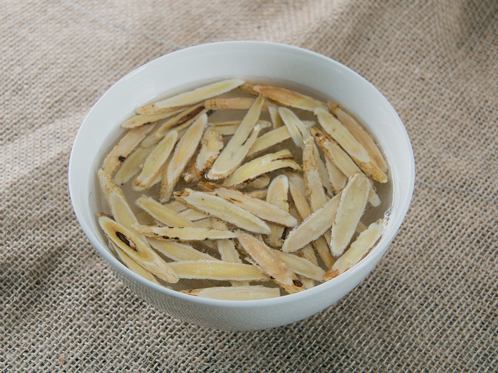 黄芪用清水浸泡3-5分钟,洗净沥干备用。