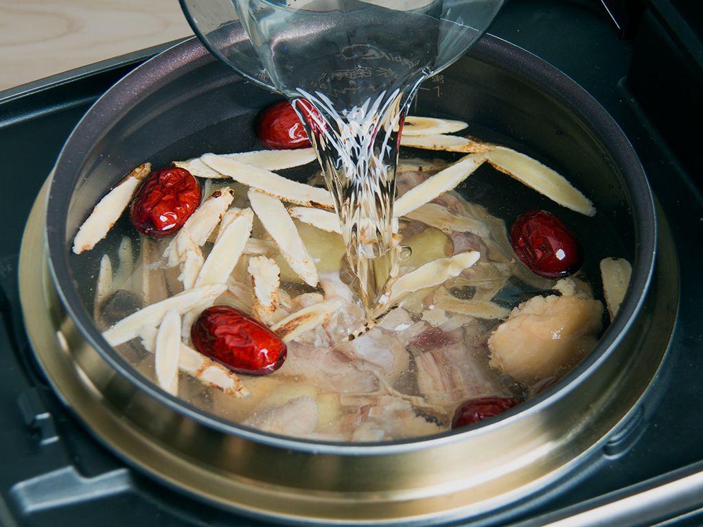将所有材料放入内锅注入清水至煮粥1刻度水位。