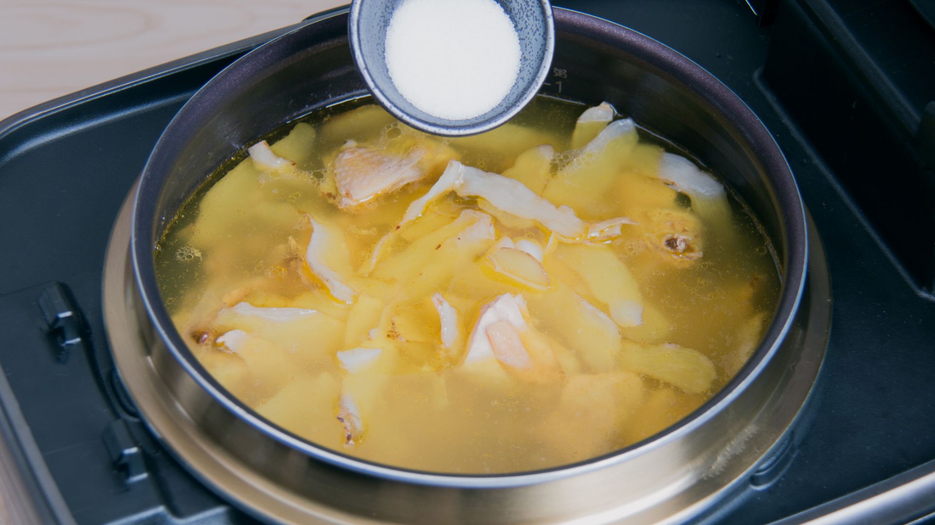 款汤尤其适合秋冬季节,特点是非常浓郁,有点儿像清香的米粥上面的那层米汤一样。汤里的芡实和香芋的味道相结合,喝一口,让人感觉那股香味能飘到头顶。据说芡实的碳水化合物极丰富,健脾益胃,营养也很容易吸收。