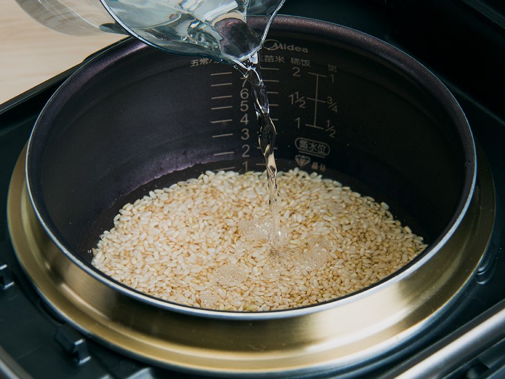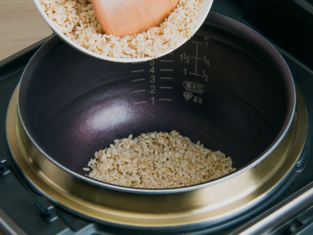 将发芽米(糙米)量好放入内锅,(可按人数增减重量)。