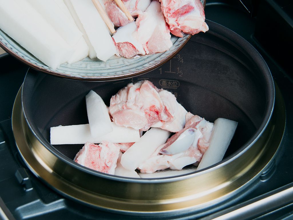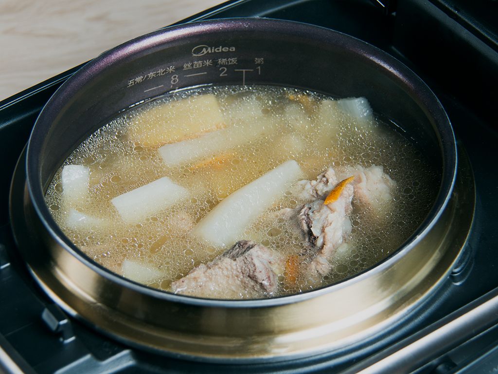白萝卜含丰富的维生素C和微量元素锌,有助于增强机体的免疫功能,提高抗病能力;萝卜中的芥子油能促进胃肠蠕动,增加食欲,帮助消化;猪骨除含蛋白、脂肪、维生素外,最让人容易吸引的就是补充钙质。两者一起可称为绝配啊!