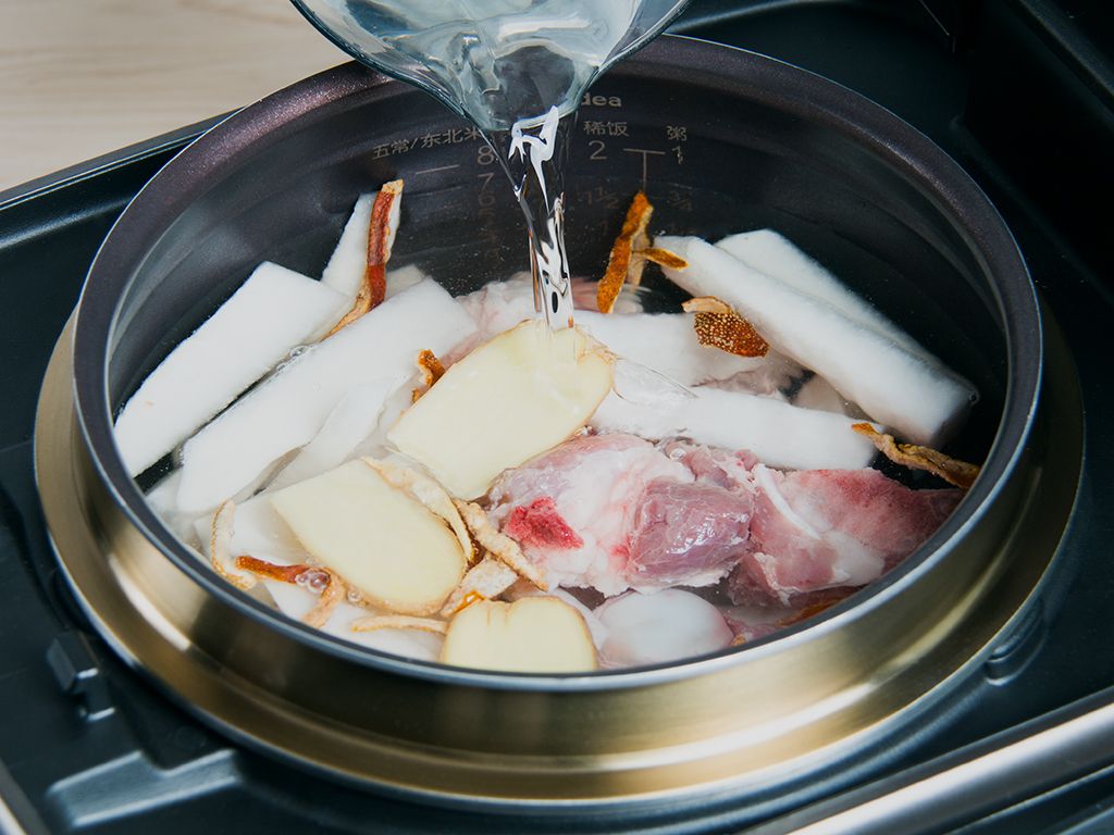加水约1000毫升,最多不超过粥0.5刻度水位,合盖开始烹饪。(步骤中图片仅供参考)