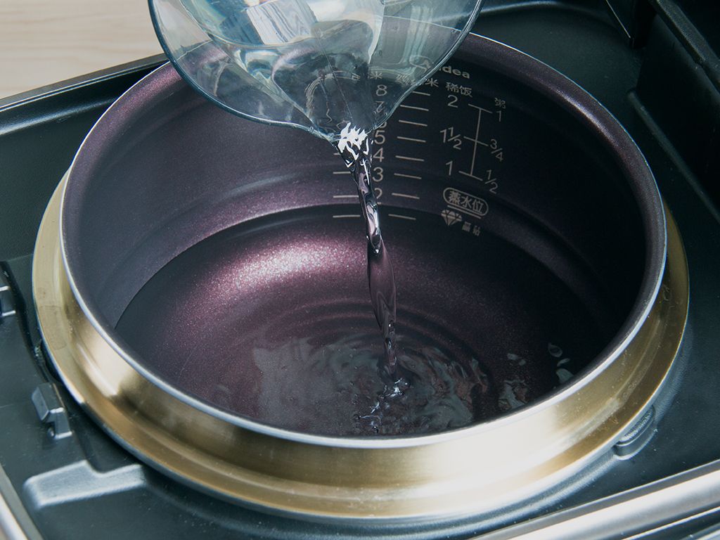 饭煲内锅放清水至煮饭1刻度水位(约370毫升)。