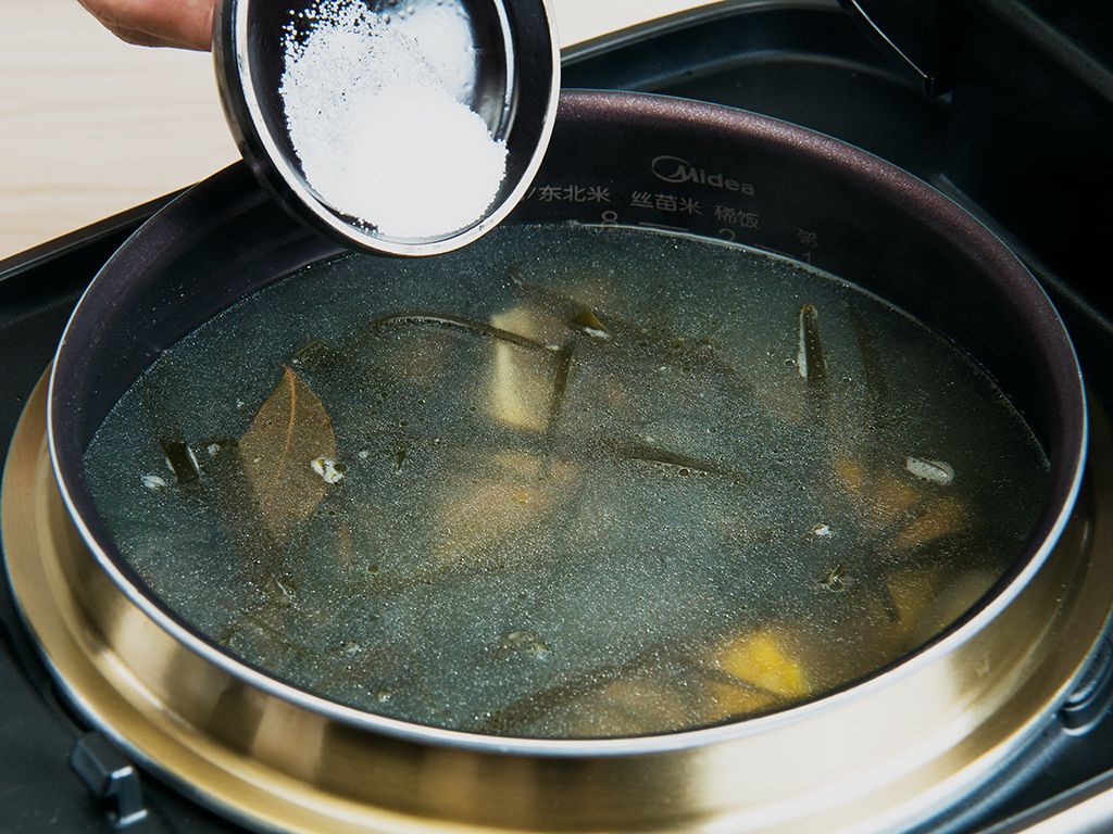 结束后适量加盐5克、鸡粉2.5克调味即可食用