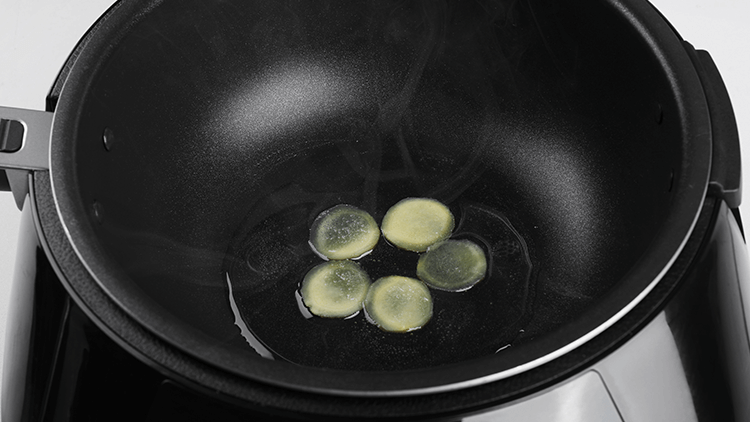 1、放入食用油1大勺、生姜5片、八角1个 。