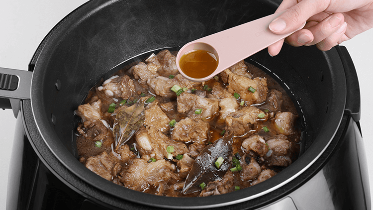 1、放入老抽0.5大勺、盐2小勺、料酒1.5大勺、水600毫升。